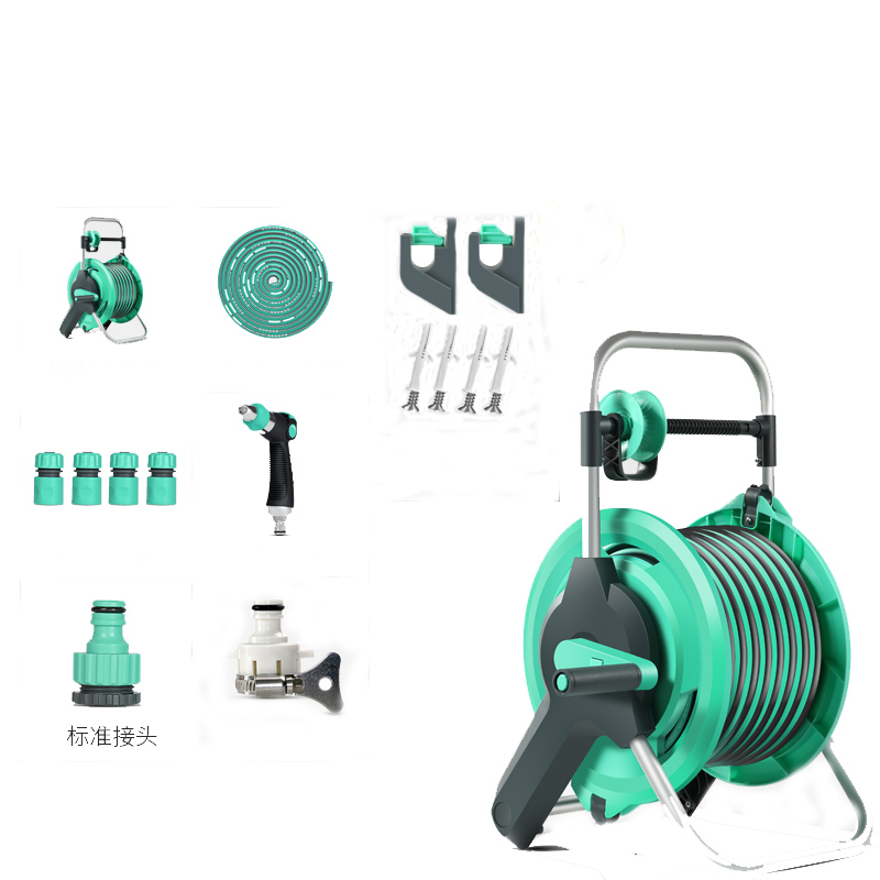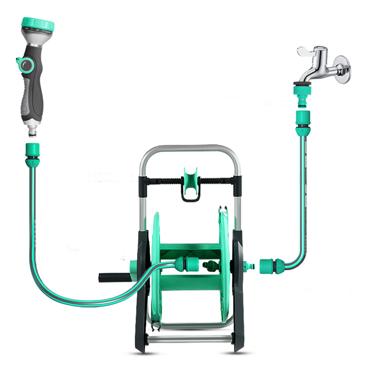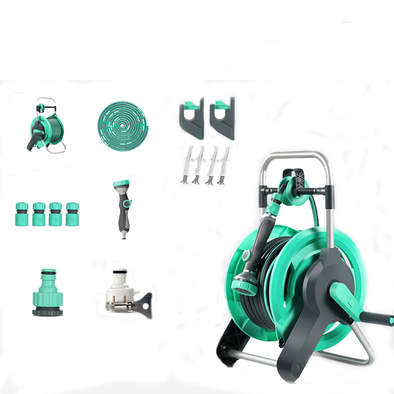 Component: Hose Reel Rack + PVC Hose + Connector Set + Water Gun