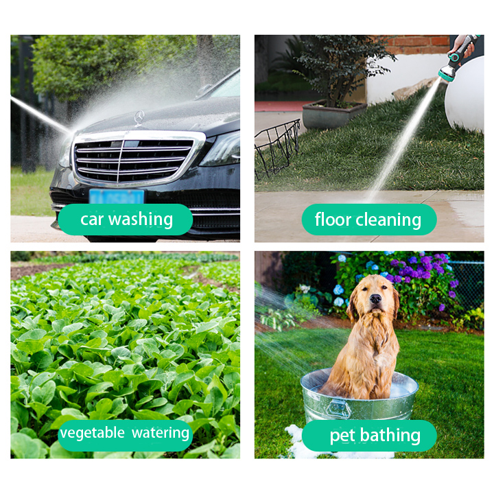 Equipped with an optional water gun featuring multiple spray patterns, it is ideal for a wide range of tasks, including garden irrigation, car washing, pet bathing, and floor cleaning, meeting diverse daily needs with ease.