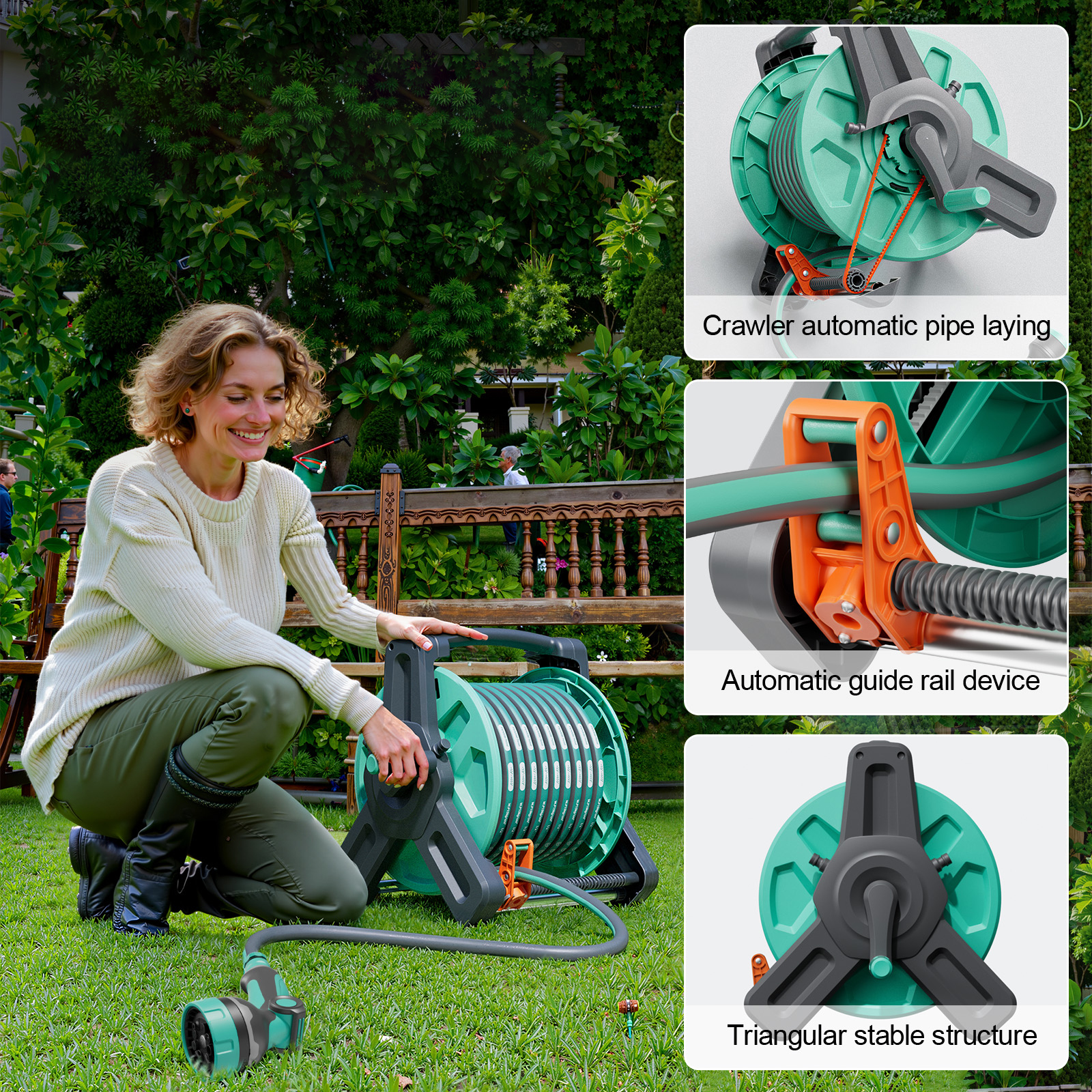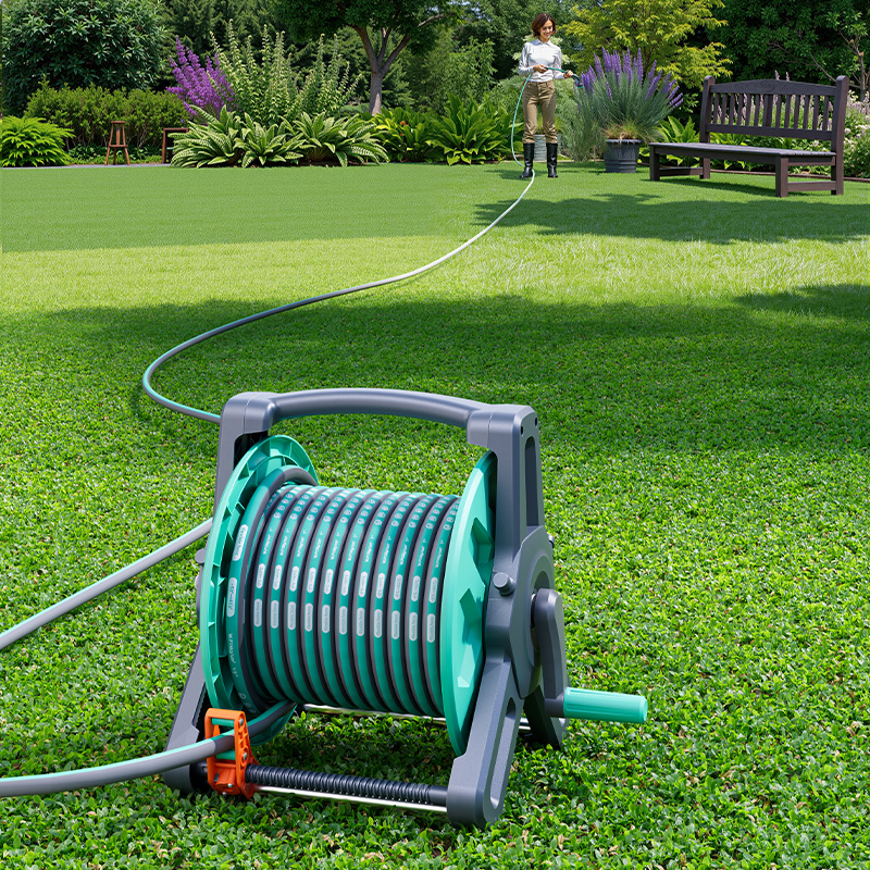 The optimized frame structure combines stability and portability, enabling efficient and organized storage of your garden hose while avoiding tangles and clutter.