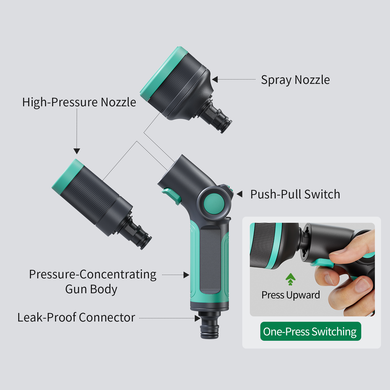 Equipped with an optional water gun featuring multiple spray patterns, it is ideal for a wide range of tasks, including garden irrigation, car washing, pet bathing, and floor cleaning, meeting diverse daily needs with ease.