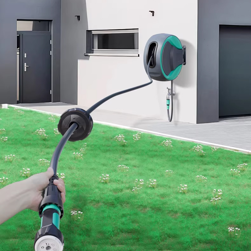 High quality spring recycling mechanism can rewind the hose automatically and orderly, you can stop at any length.